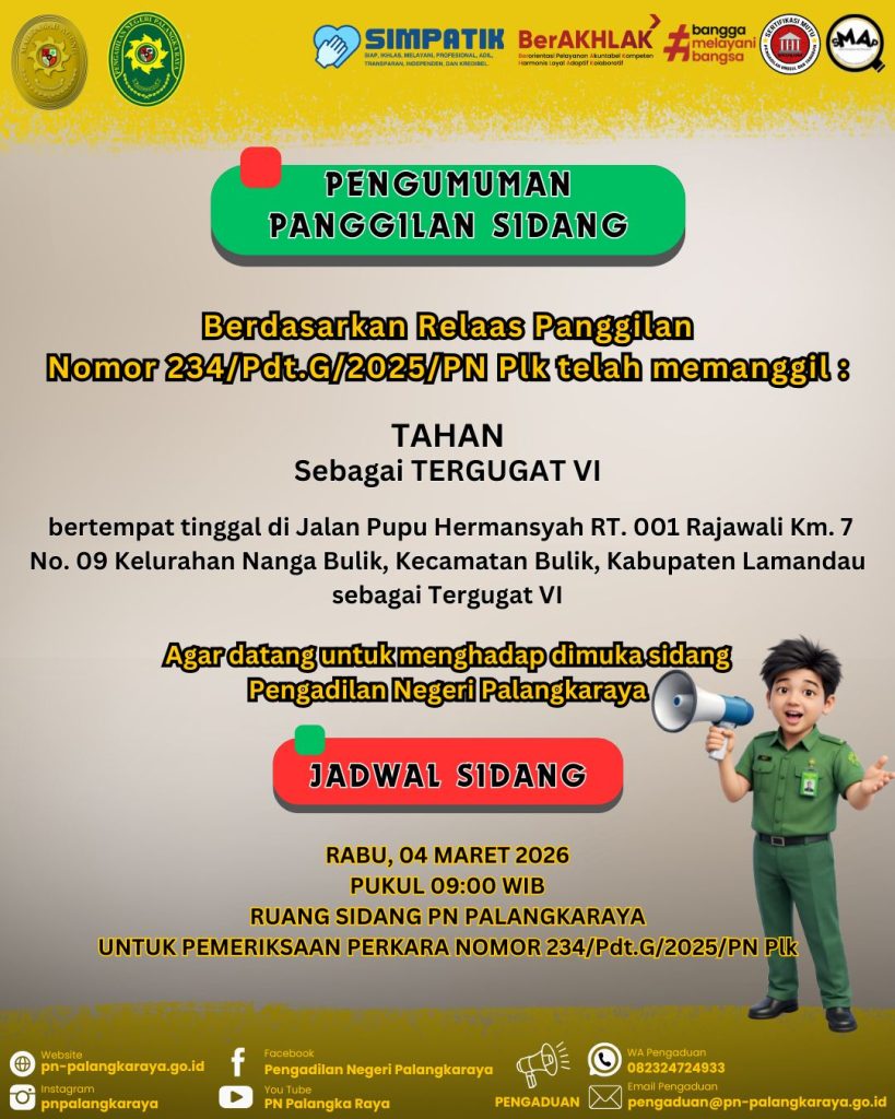 untuk menghadap sidang Pengadilan Negeri Palangkaraya yang diselenggarakan di :