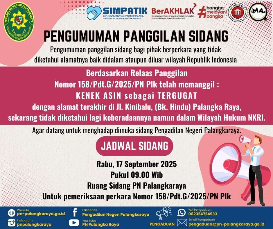 Berdasarkan Relaas Panggilan Nomor 158/Pdt.G/2025/PN Plk telah memanggil :