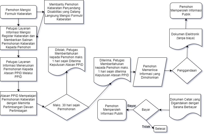- Pemohon mengisi formulir keberatan dan mengirimkannya melalui surat tercatat kepada Atasan PPID